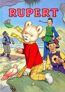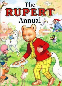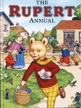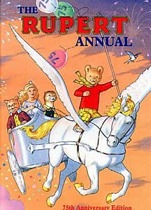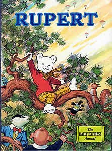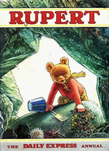 Traditionally, Rupert always had a brown face on the front cover (and continued to do so after 1973). For the year of 1973 Bestall gave Rupert a brown face as usual, but the editor of the Express thought that this blended into the background too much, so decided to change Rupert to a white bear without consulting Bestall. When Bestall realised, he left in protest and never drew another cover for a Rupert annual.