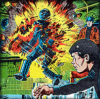 From then on the blood flowed! "Battle Picture Weekly" was launched, brilliantly done, drawn and written, plus the ![]() unforgettable "Charley's War" by Pat Mills and Joe Colquhoun, but then as sales fell it became "Battle Action Force" and then latterly "Battle with Stormforce"...and then zilch! THERE AGAIN...the fact that 2000AD has been running for more than 25 years is yet another unpredictable feather in the caps of of Jaay' n' Pee. Bravo les deux! |